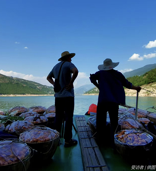 村民一个电话打来,小船就会缓缓调整船头,逐渐靠近岸边时,发动机停止了轰鸣仅靠惯性向岸边驶去,肩扛两担枇杷的村民还未等船只完全靠岸,便快速跃上甲板。老船长听到上客的响动后也心领神会,不到2分钟的停顿,发动机便再次启动,反向推动船只再次出发。
